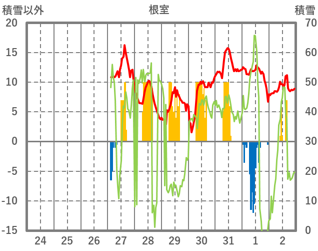 | 日 | 時 | 気温 | 降水 | 風向/風速 | 日照 | 積雪 | 降雪 |