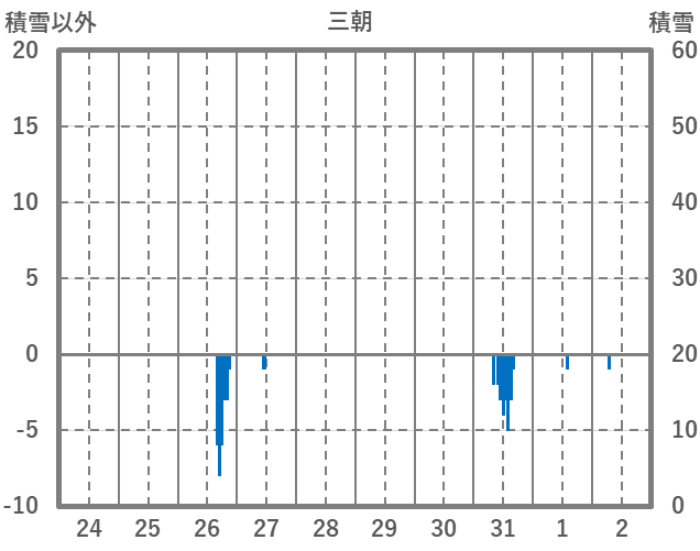 | 日 | 時 | 気温 | 降水 | 風向/風速 | 日照 | 積雪 | 降雪 |