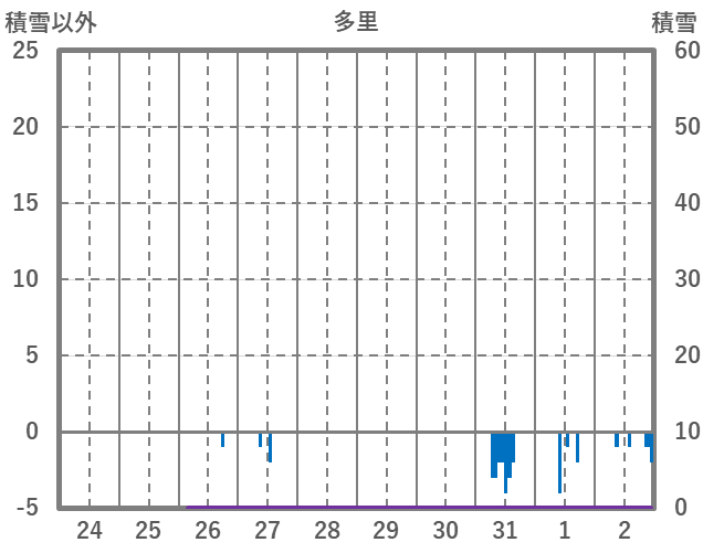 | 日 | 時 | 気温 | 降水 | 風向/風速 | 日照 | 積雪 | 降雪 |