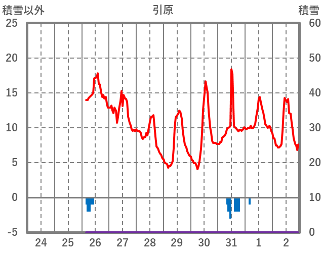 | 日 | 時 | 気温 | 降水 | 風向/風速 | 日照 | 積雪 | 降雪 |