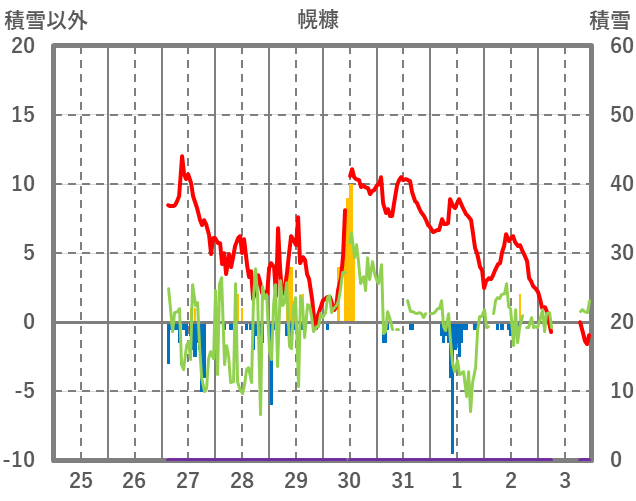 | 日 | 時 | 気温 | 降水 | 風向/風速 | 日照 | 積雪 | 降雪 |