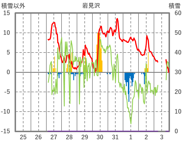 | 日 | 時 | 気温 | 降水 | 風向/風速 | 日照 | 積雪 | 降雪 |