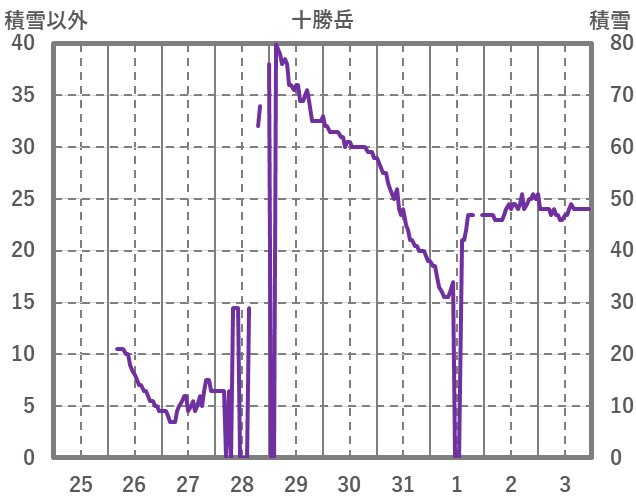 | 日 | 時 | 気温 | 降水 | 風向/風速 | 日照 | 積雪 | 降雪 |