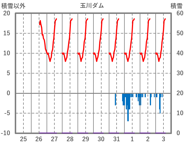 | 日 | 時 | 気温 | 降水 | 風向/風速 | 日照 | 積雪 | 降雪 |