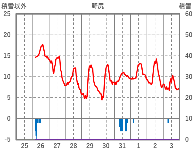 | 日 | 時 | 気温 | 降水 | 風向/風速 | 日照 | 積雪 | 降雪 |