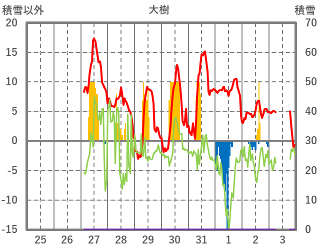 | 日 | 時 | 気温 | 降水 | 風向/風速 | 日照 | 積雪 | 降雪 |