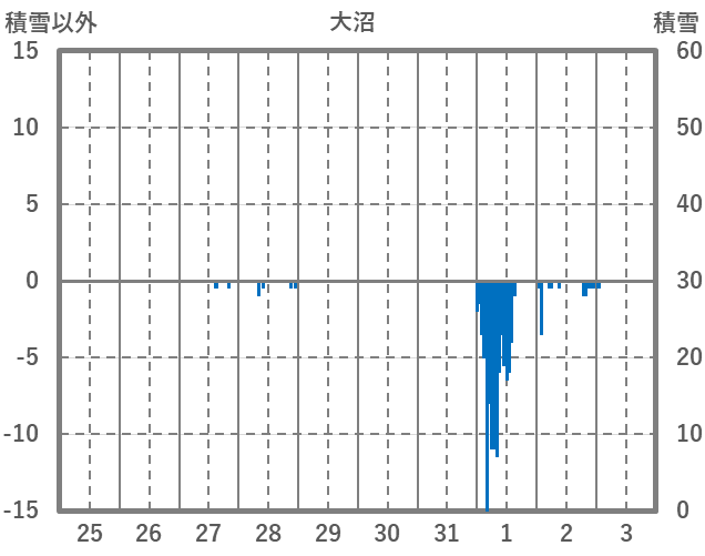 | 日 | 時 | 気温 | 降水 | 風向/風速 | 日照 | 積雪 | 降雪 |