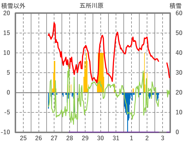 | 日 | 時 | 気温 | 降水 | 風向/風速 | 日照 | 積雪 | 降雪 |