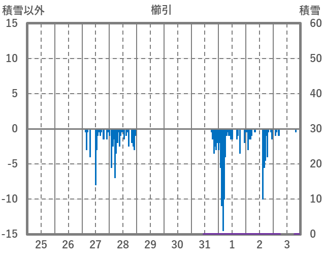 | 日 | 時 | 気温 | 降水 | 風向/風速 | 日照 | 積雪 | 降雪 |
