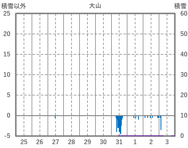 | 日 | 時 | 気温 | 降水 | 風向/風速 | 日照 | 積雪 | 降雪 |