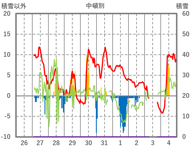 | 日 | 時 | 気温 | 降水 | 風向/風速 | 日照 | 積雪 | 降雪 |