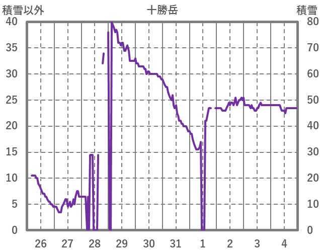 | 日 | 時 | 気温 | 降水 | 風向/風速 | 日照 | 積雪 | 降雪 |