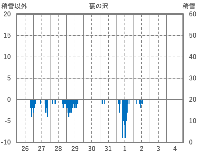 | 日 | 時 | 気温 | 降水 | 風向/風速 | 日照 | 積雪 | 降雪 |
