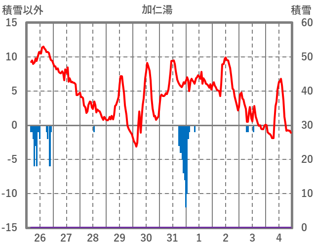| 日 | 時 | 気温 | 降水 | 風向/風速 | 日照 | 積雪 | 降雪 |