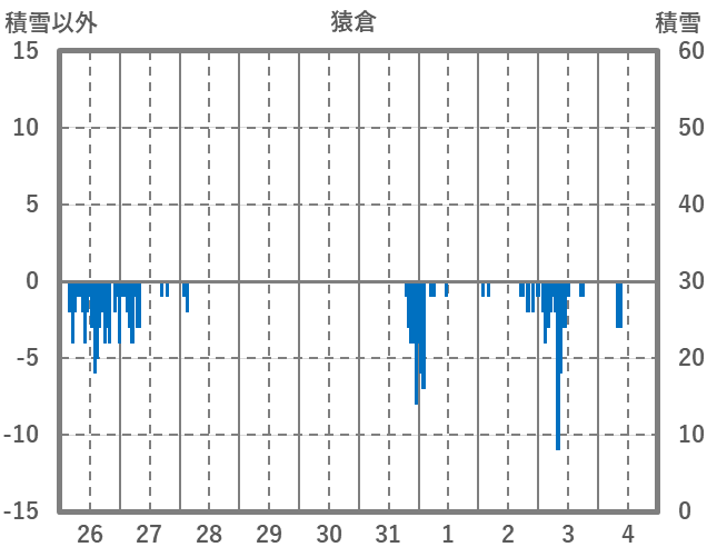 | 日 | 時 | 気温 | 降水 | 風向/風速 | 日照 | 積雪 | 降雪 |