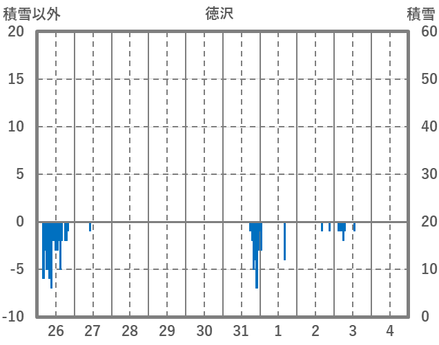 | 日 | 時 | 気温 | 降水 | 風向/風速 | 日照 | 積雪 | 降雪 |
