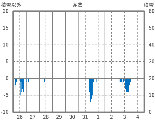 | 日 | 時 | 気温 | 降水 | 風向/風速 | 日照 | 積雪 | 降雪 |