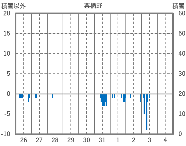 | 日 | 時 | 気温 | 降水 | 風向/風速 | 日照 | 積雪 | 降雪 |