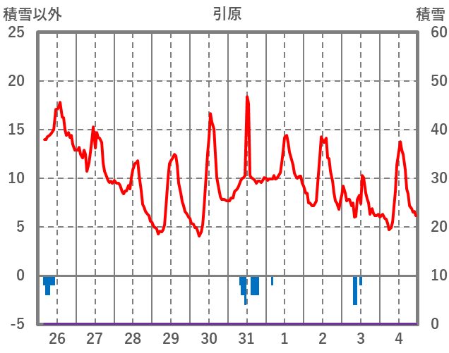 | 日 | 時 | 気温 | 降水 | 風向/風速 | 日照 | 積雪 | 降雪 |