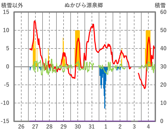 | 日 | 時 | 気温 | 降水 | 風向/風速 | 日照 | 積雪 | 降雪 |