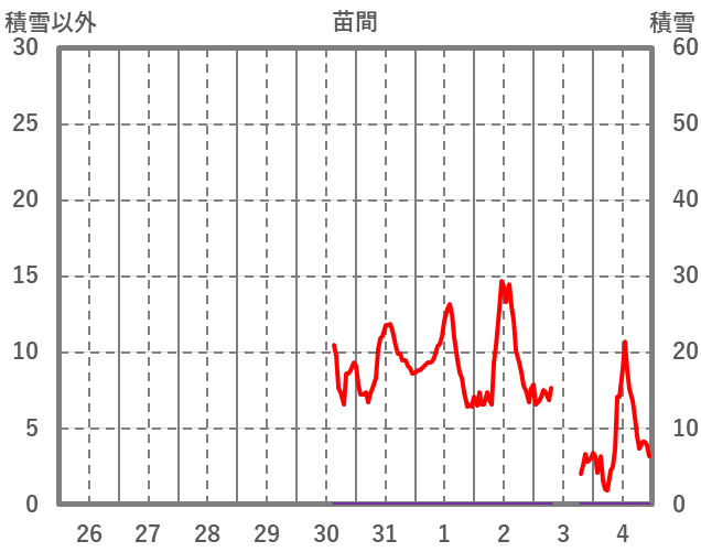 | 日 | 時 | 気温 | 降水 | 風向/風速 | 日照 | 積雪 | 降雪 |