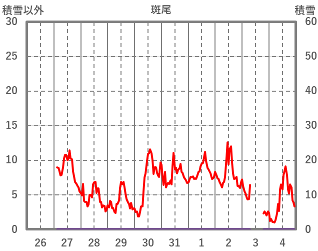 | 日 | 時 | 気温 | 降水 | 風向/風速 | 日照 | 積雪 | 降雪 |