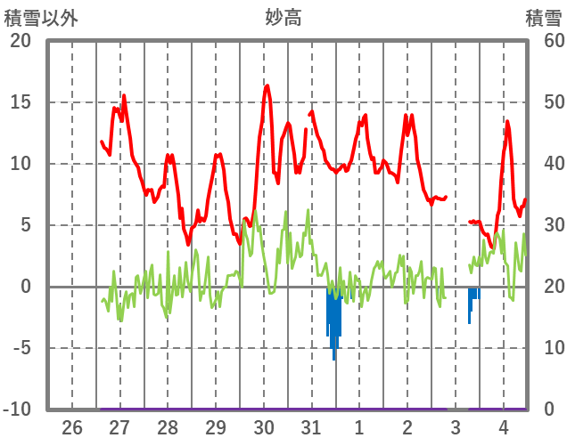 | 日 | 時 | 気温 | 降水 | 風向/風速 | 日照 | 積雪 | 降雪 |