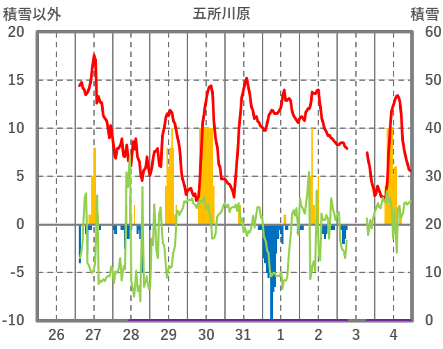| 日 | 時 | 気温 | 降水 | 風向/風速 | 日照 | 積雪 | 降雪 |