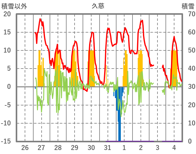| 日 | 時 | 気温 | 降水 | 風向/風速 | 日照 | 積雪 | 降雪 |