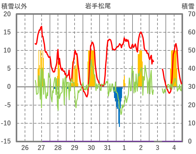| 日 | 時 | 気温 | 降水 | 風向/風速 | 日照 | 積雪 | 降雪 |
