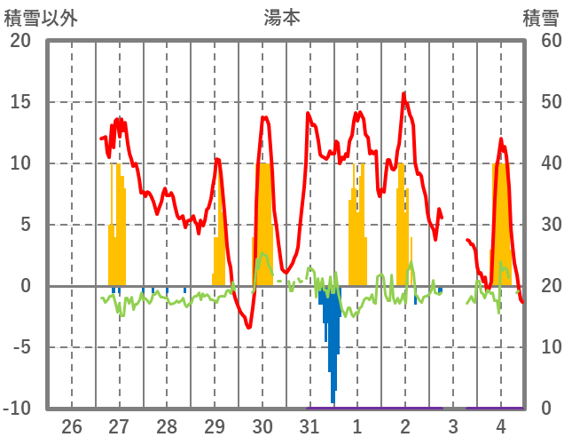 | 日 | 時 | 気温 | 降水 | 風向/風速 | 日照 | 積雪 | 降雪 |