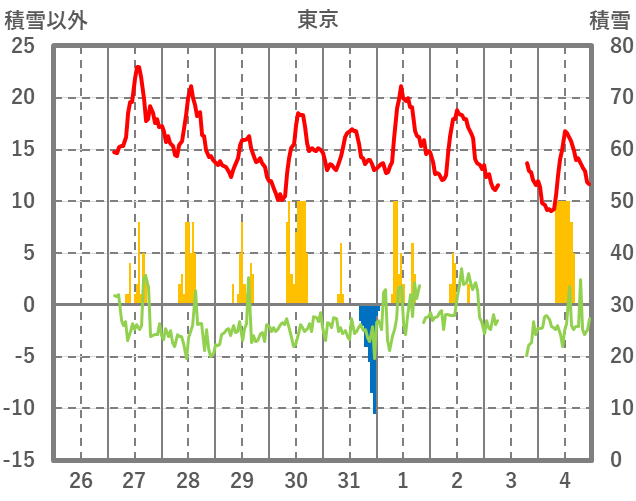 | 日 | 時 | 気温 | 降水 | 風向/風速 | 日照 | 積雪 | 降雪 |