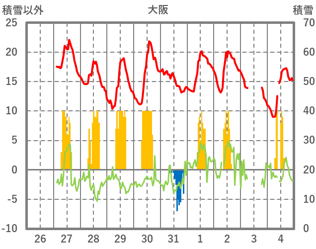 | 日 | 時 | 気温 | 降水 | 風向/風速 | 日照 | 積雪 | 降雪 |