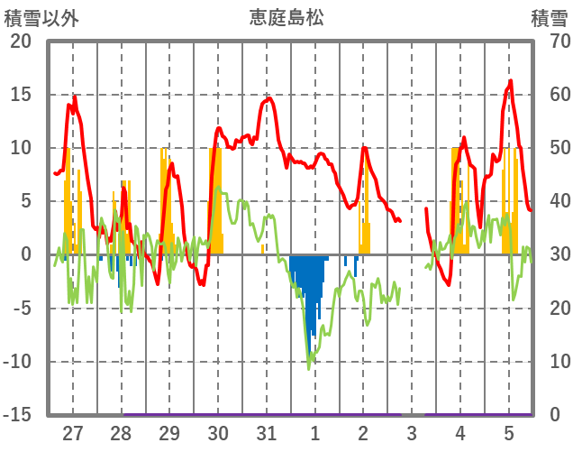 | 日 | 時 | 気温 | 降水 | 風向/風速 | 日照 | 積雪 | 降雪 |