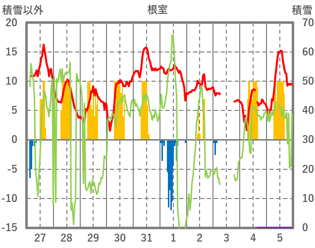 | 日 | 時 | 気温 | 降水 | 風向/風速 | 日照 | 積雪 | 降雪 |