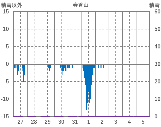 | 日 | 時 | 気温 | 降水 | 風向/風速 | 日照 | 積雪 | 降雪 |