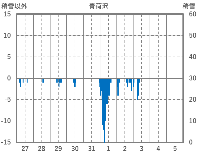 | 日 | 時 | 気温 | 降水 | 風向/風速 | 日照 | 積雪 | 降雪 |