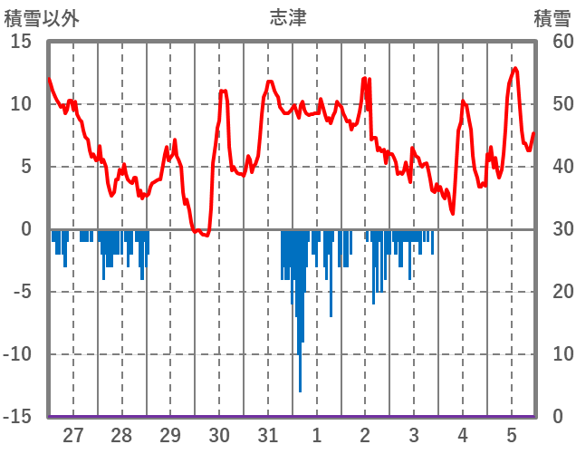 | 日 | 時 | 気温 | 降水 | 風向/風速 | 日照 | 積雪 | 降雪 |