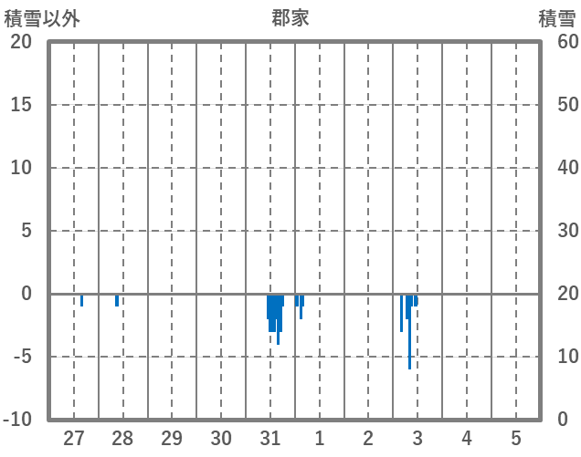 | 日 | 時 | 気温 | 降水 | 風向/風速 | 日照 | 積雪 | 降雪 |