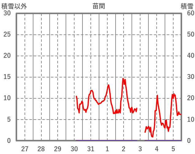 | 日 | 時 | 気温 | 降水 | 風向/風速 | 日照 | 積雪 | 降雪 |