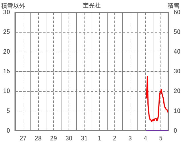 | 日 | 時 | 気温 | 降水 | 風向/風速 | 日照 | 積雪 | 降雪 |