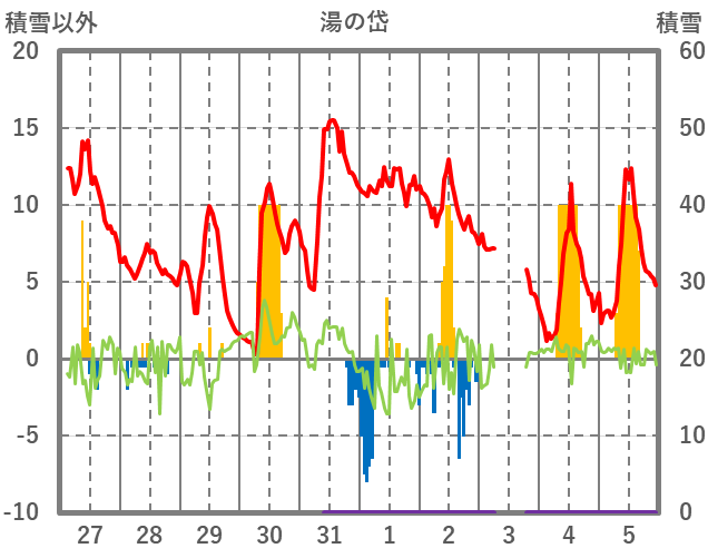 | 日 | 時 | 気温 | 降水 | 風向/風速 | 日照 | 積雪 | 降雪 |