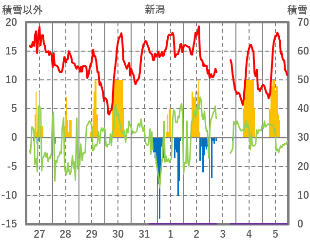 | 日 | 時 | 気温 | 降水 | 風向/風速 | 日照 | 積雪 | 降雪 |