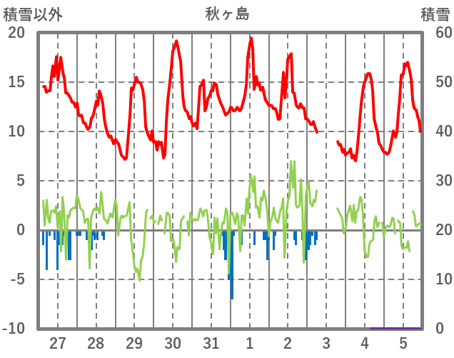| 日 | 時 | 気温 | 降水 | 風向/風速 | 日照 | 積雪 | 降雪 |