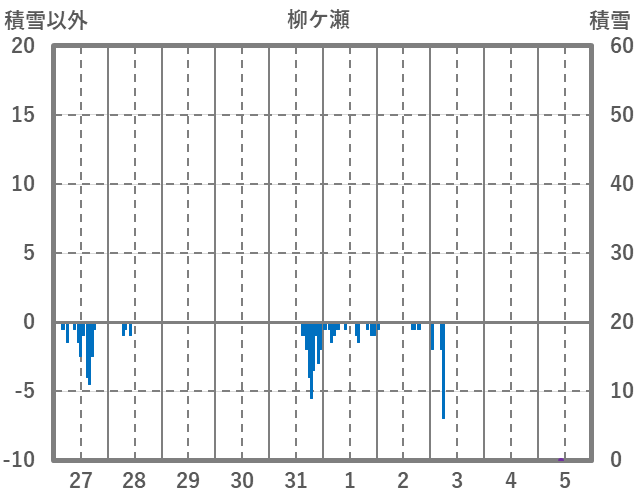 | 日 | 時 | 気温 | 降水 | 風向/風速 | 日照 | 積雪 | 降雪 |