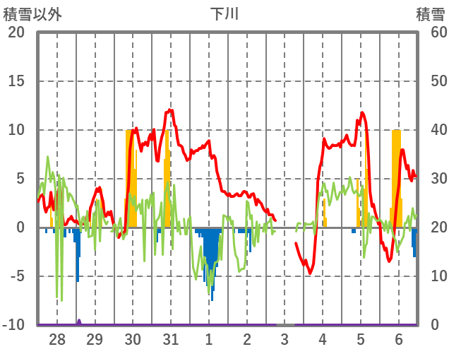 | 日 | 時 | 気温 | 降水 | 風向/風速 | 日照 | 積雪 | 降雪 |