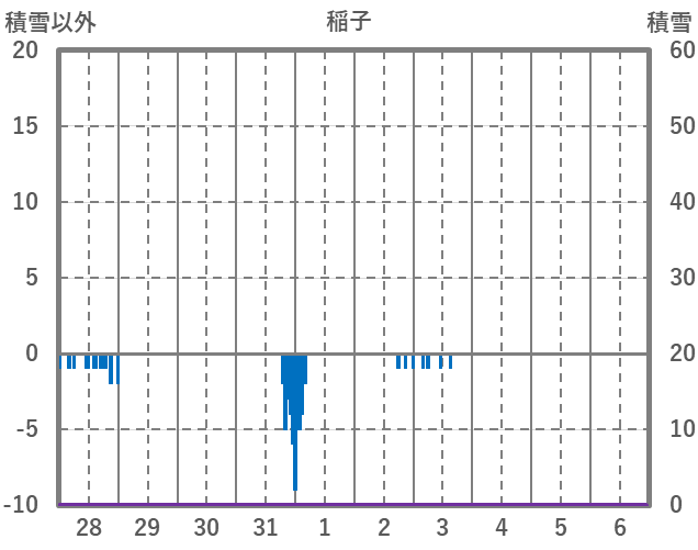| 日 | 時 | 気温 | 降水 | 風向/風速 | 日照 | 積雪 | 降雪 |
