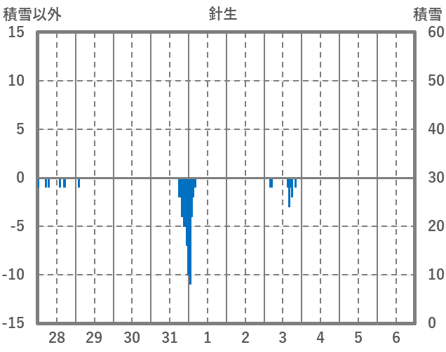 | 日 | 時 | 気温 | 降水 | 風向/風速 | 日照 | 積雪 | 降雪 |