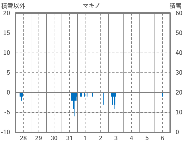 | 日 | 時 | 気温 | 降水 | 風向/風速 | 日照 | 積雪 | 降雪 |