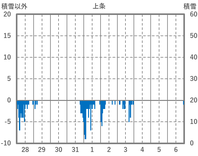 | 日 | 時 | 気温 | 降水 | 風向/風速 | 日照 | 積雪 | 降雪 |